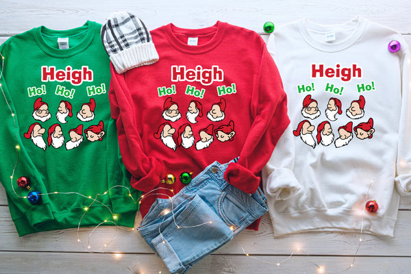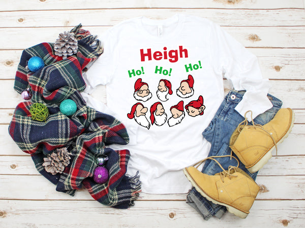 Introducing a ONCE UPON A TEE SHIRT original design: Heigh HO HO HO ---- BELLA CANVAS brand style 3001cvc. Add to your cart what style tee you want and then let us know specifics in the comments!
